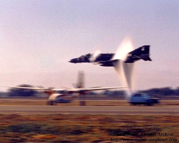 Using a 35mm camera, a telephoto lens and ASA 400 film, Pat Maloney, an engineering planner, photographed an F-4 Phantom II at the mment it broke the sound barrier at the Annual Point Magu Naval Air Station Air Show. "The photograph of the visible shock is rare," stated Maloney. "It required a humid day, split second timing, and no small measure of luck." Maloney frequently practices photography at the many air shows he attends.